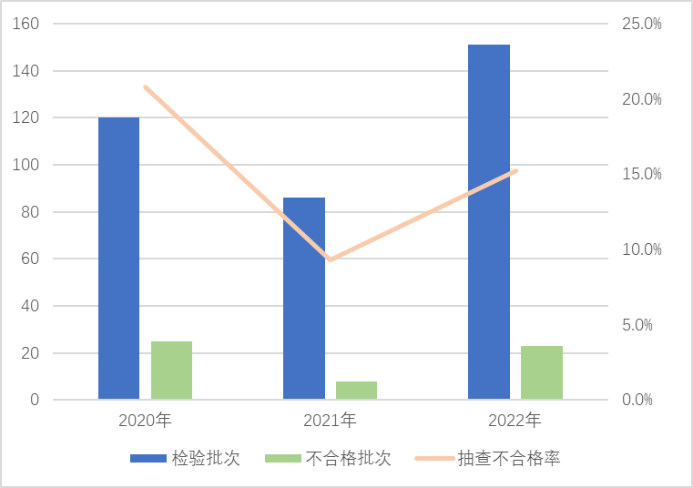 ?。ㄎ澹┪kU(xiǎn)化學(xué)品包裝物不合格率為15.2%。本次抽查18個(gè)?。▍^(qū)、市)151家企業(yè)生產(chǎn)的151批次產(chǎn)品,發(fā)現(xiàn)23批次產(chǎn)品不合格,抽查不合格率為15.2%,較上次抽查上升5.9個(gè)百分點(diǎn)。該產(chǎn)品近3年抽查不合格率分別為20.8%、9.3%、15.2%。