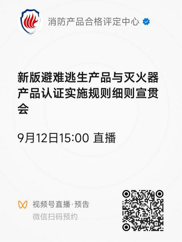 會議通過微信視頻號“消防產(chǎn)品合格評定中心”直播召開,請各參會人員提前掃描會議鏈接二維碼預約會議,以便及時參會。會議鏈接: