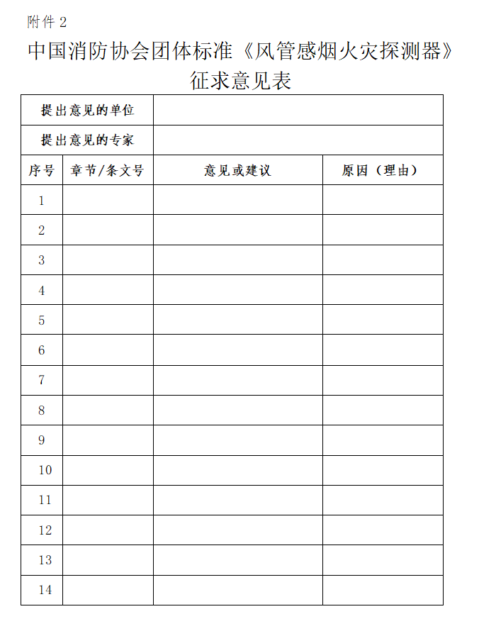2.中國消防協(xié)會團(tuán)體標(biāo)準(zhǔn)征求意見表