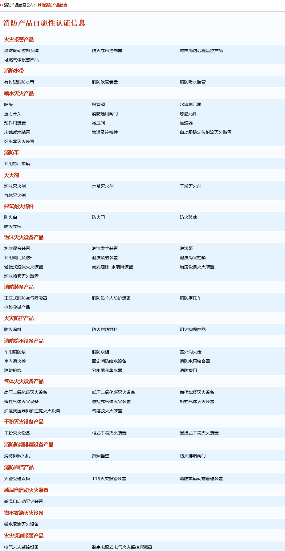 消防產(chǎn)品自愿性認(rèn)證信息目錄