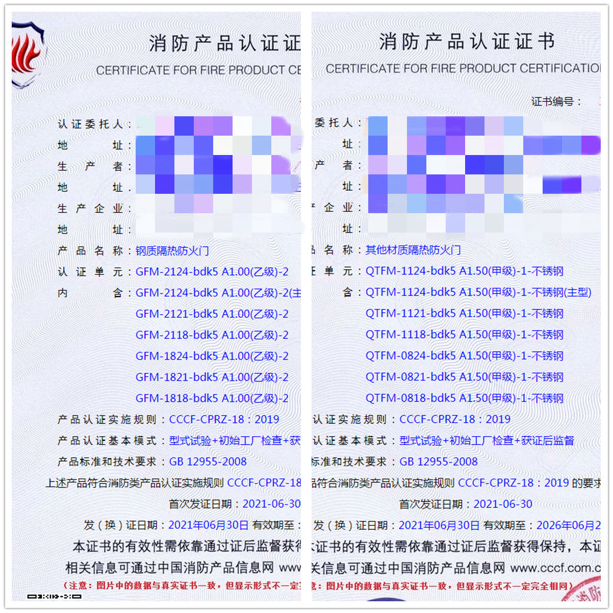 祝賀我司福建地區(qū)客戶申請的(鋼質(zhì)隔熱防火門、其他材質(zhì)隔熱防火門)已于2021年6月30號獲證,同祝企業(yè)生意興隆,財源滾滾。