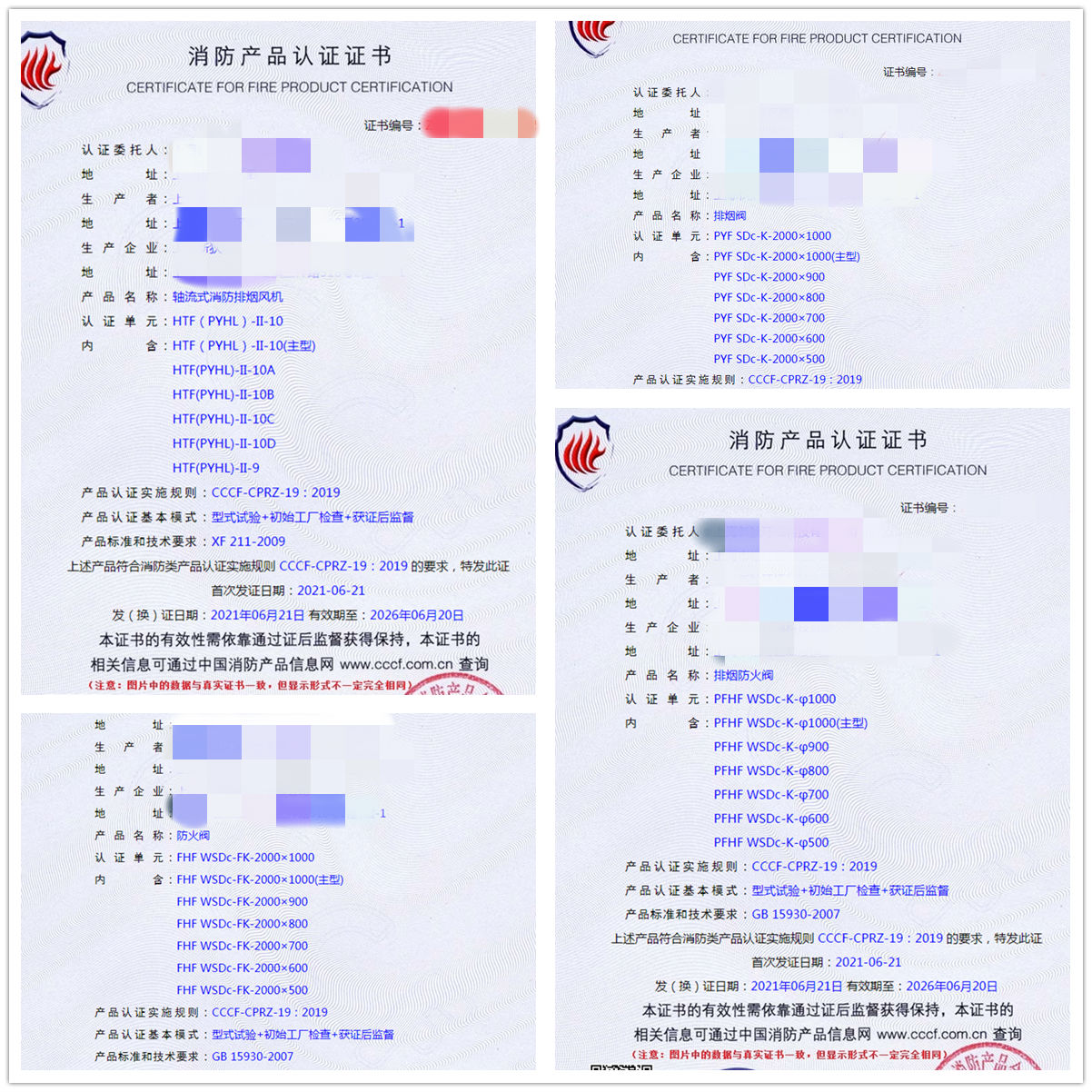 祝賀我司上海地區(qū)客戶申請的(軸流式消防排煙風機、排煙閥、排煙防火閥、防火閥、離心式消防排煙風機)已于2021年6月21號獲證,同祝企業(yè)生意興隆,財源滾滾。